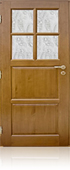 Są to drzwi płycinowe, pełne oraz oszklone szkłem wg. oferty szkła. Płyciny mają wyfrezowane aplikacje wykończeniowe.