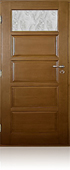 Są to drzwi płycinowe, pełne oraz oszklone szkłem wg. oferty szkła. Płyciny mają wyfrezowane aplikacje wykończeniowe.