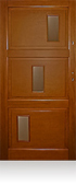 Są to drzwi płycinowe, pełne oraz oszklone szyba zespoloną, izolowane pianką polistyrenową. Płyciny mają wyfrezowane aplikacje wykończeniowe.