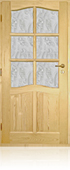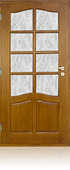 Są to drzwi płycinowe, pełne oraz oszklone szkłem wg. oferty szkła. Płyciny mają wyfrezowane aplikacje wykończeniowe.