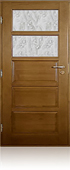 Są to drzwi płycinowe, pełne oraz oszklone szkłem wg. oferty szkła. Płyciny mają wyfrezowane aplikacje wykończeniowe.